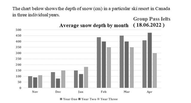 The chart below shows the depth of snow (in cm) in a particular ski resort in Canada in three individuals years.